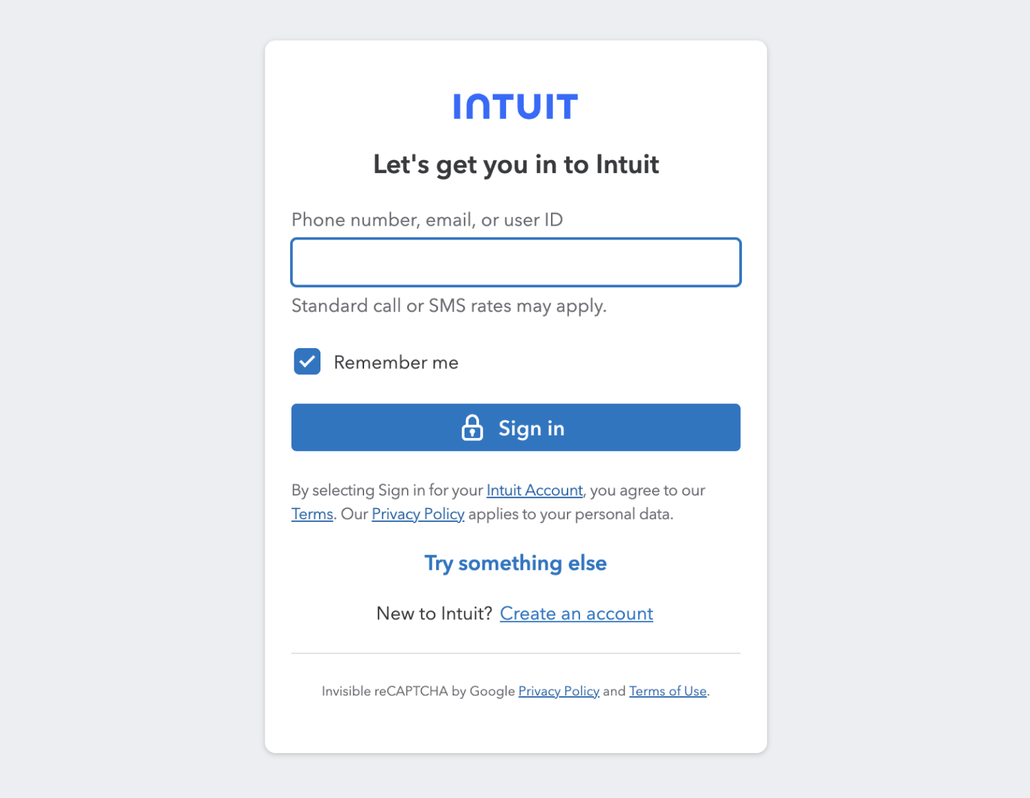 A popup window will appear, courtesy of Intuit, the company that operates QuickBooks. Sign into your account via Google or your user ID. If you don’t have an account with Intuit, easily create one by clicking the Create an account link at the bottom of the popup.