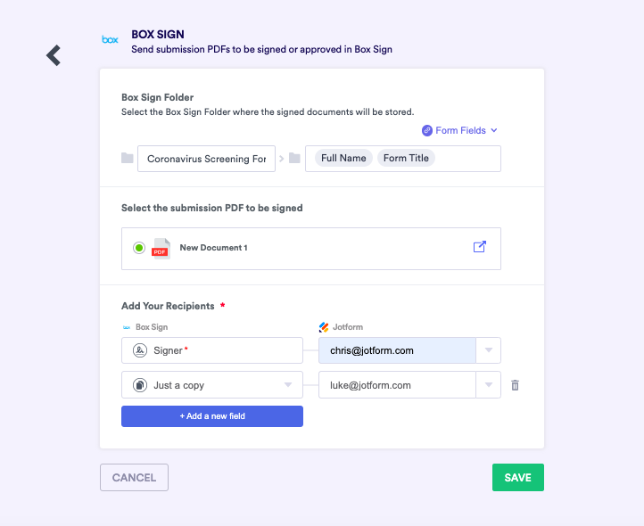 Thankfully there’s a solution that will make your e-signing workflow more efficient, manageable, and secure — the cloud. We’re happy to debut a Jotform integration with Box Sign, Box’s native e-signature solution, that combines the power of Jotform with the enterprise-grade security and content management capabilities of Box.