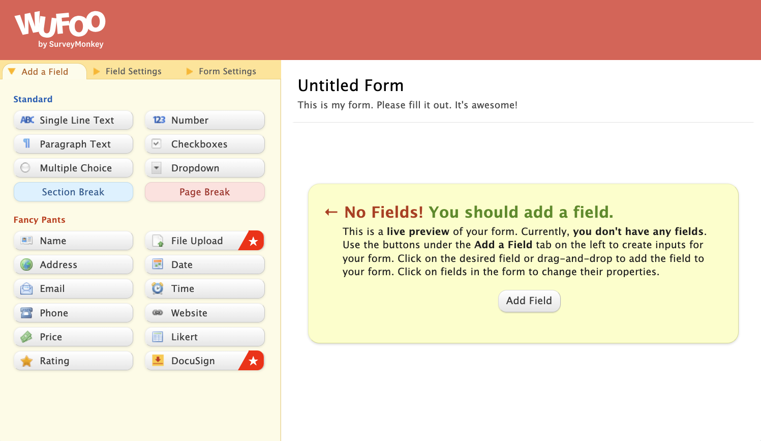 - Pricing: Free accounts can create and share basic forms, as well as collect a limited number of responses; in addition, Wufoo offers four premium plans ranging in price from roughly $16.25 to $183.25 per month; the top three premium plans offer an unlimited number of forms and entries ranging from 1,000 to 200,000