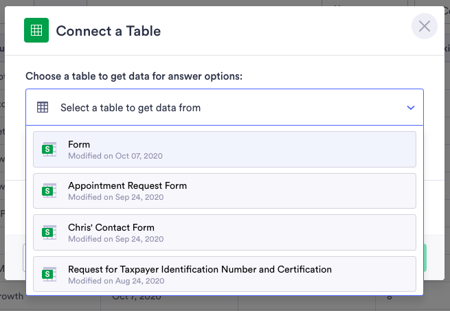 While in the table/tab to which you’d like to add data, click Add to create a new column, then click Connect. Name your column, and specify the table, tab, and column that you want to retrieve data from.
