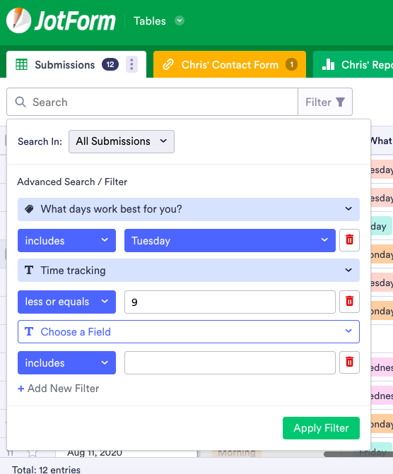 Create as many filters as you like. Jotform Tables offers the flexibility you need to manage your submitted data like a pro.