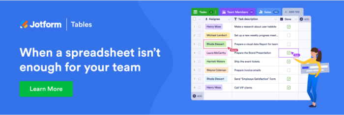 How Jotform Tables aids project management
