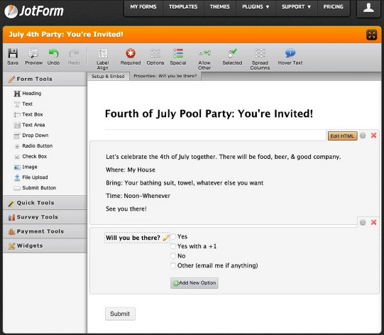 I asked “Will you be there?” with Radio Buttons. After creating your form fields, you will then proceed to the Form Designer to make your form visually appealing.
