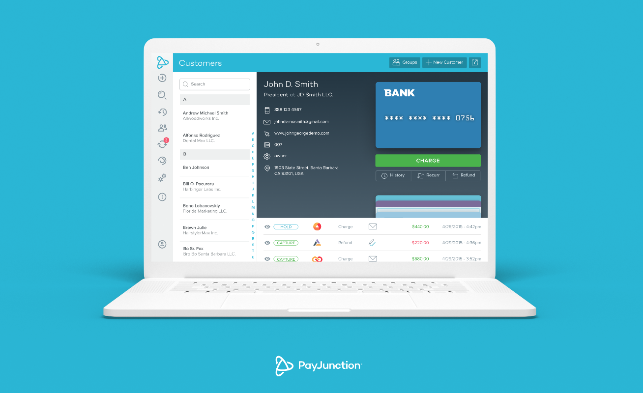 PayJunction is a no-code payment processor that’s easy to install into any SaaS application. You can get up and running in minutes with a customer-facing POS terminal and a hosted checkout button on your online store. PayJunction also enables businesses to set up recurring billing for customers who are paying in installments or have purchased an ongoing subscription.