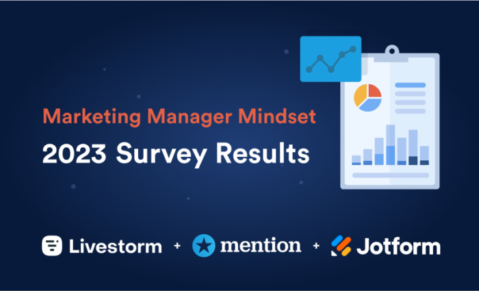 To learn more about these changes in strategy, Jotform partnered with Mention, a social media monitoring tool, and Livestorm, a video engagement platform, for a second installment of the Marketing Manager Mindset Report, using our surveying capabilities to secure insights from nearly 700 marketing professionals around the world in 2023.