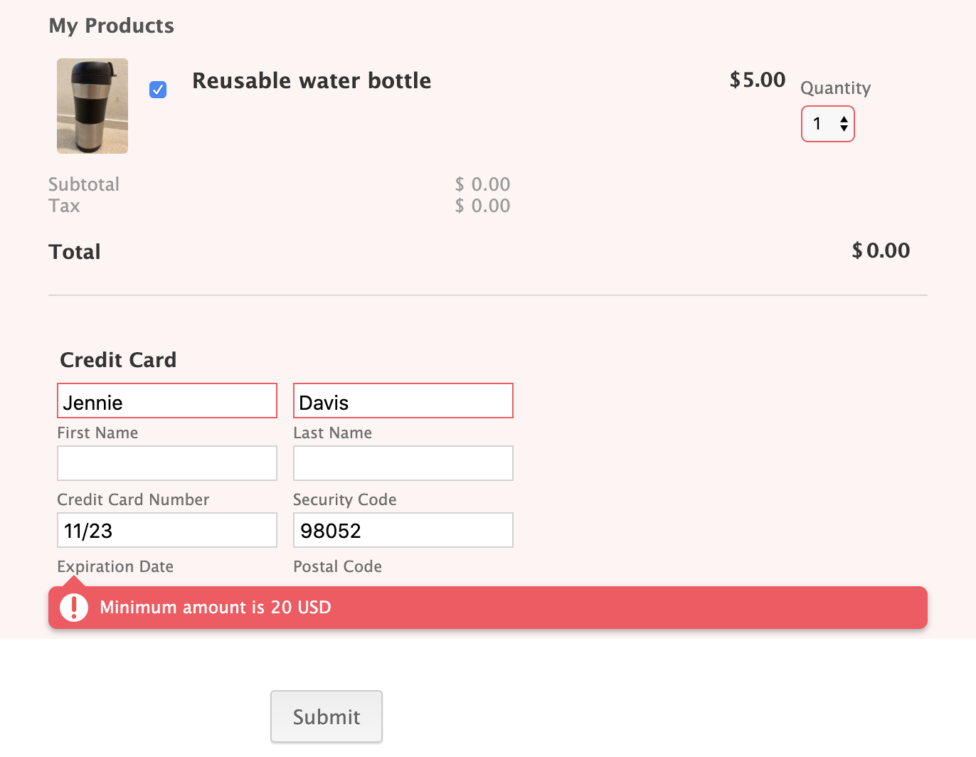 If customers try to make a purchase that’s less than the preset minimum order amount, an error message will appear.