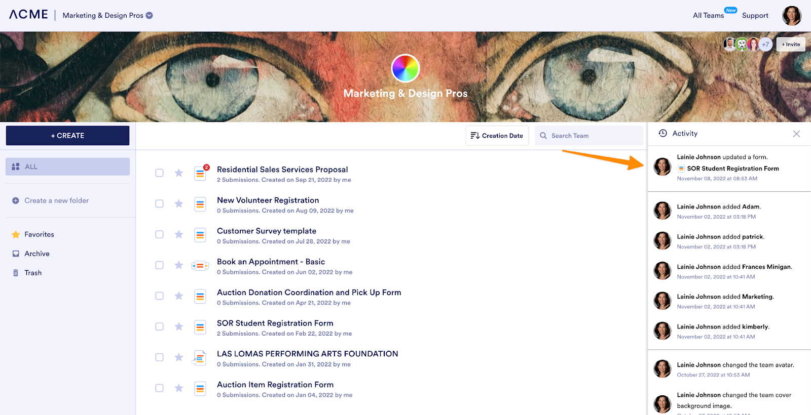 Team members can monitor activity within the team workspace to see new team member additions, updates to forms and tables, and more. Moreover, you can protect sensitive information with role-based access controls, so private and personal information isn’t accidentally shared with the wrong person.