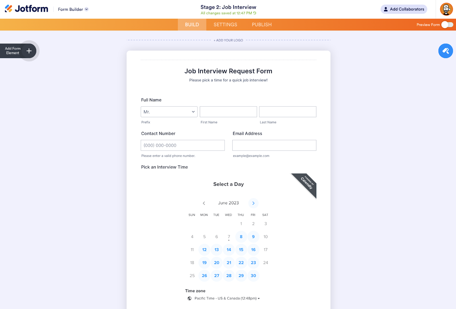 To demonstrate how your organization can streamline scheduling processes, let’s look at an end-to-end workflow for an HR team using Jotform Enterprise and Calendly to automate hiring.
