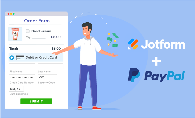 With Jotform’s new PayPal Business integration, your customers can either submit credit card payments directly through your form or choose how they want to pay using PayPal’s full suite of checkout options.