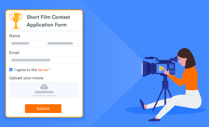 Jotform’s free video submission form is a simple, effective way to collect data. This form gives you a seamless method for collecting video submissions online. You can easily embed it on your website, share the form with a link, or add it to your email newsletter.