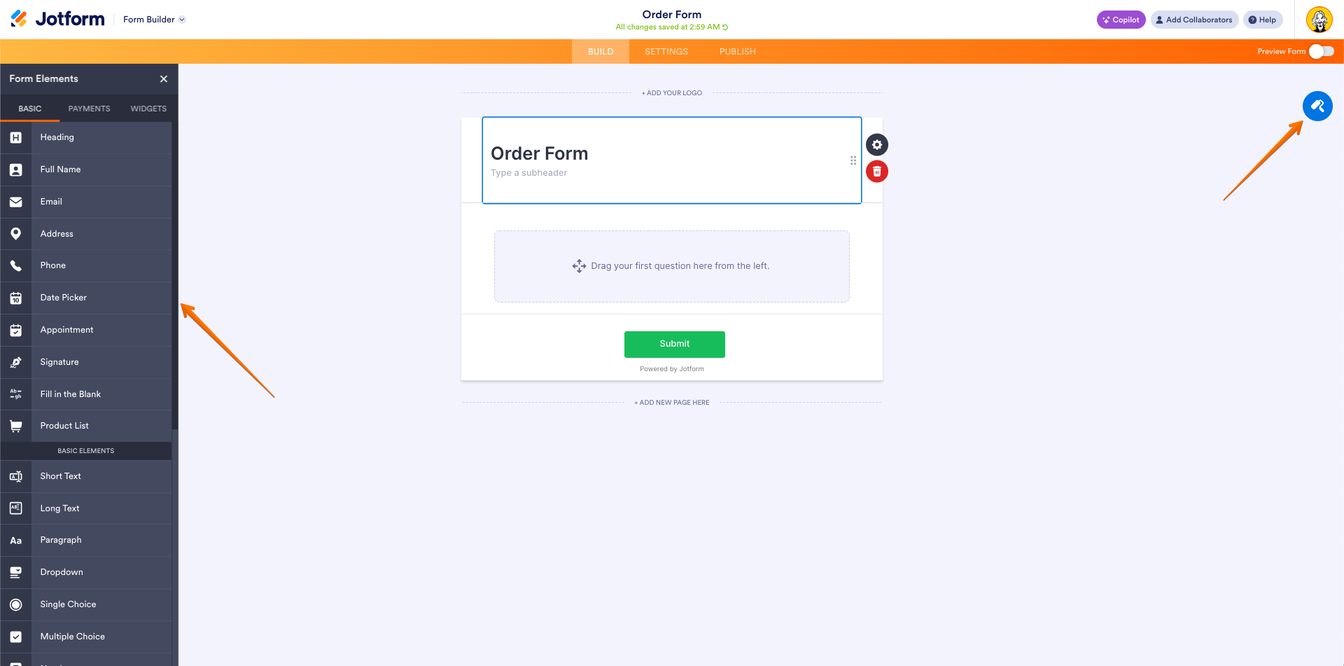 Much like Canva, Jotform‘s drag-and-drop form builder allows you to easily create forms from scratch — or with the help of over 1,700 order form templates.