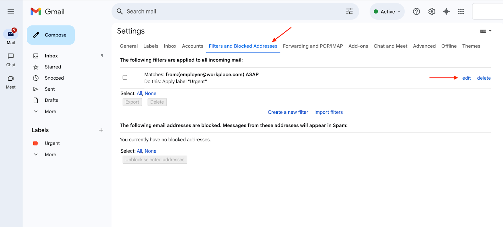 - Edit or delete filters to change what’s sent to labels