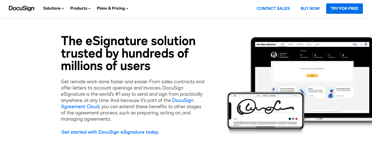 If your business relies on agreements and approvals workflows in its day-to-day operations, then consider Docusign. This paperless software eliminates the need to print and mail business contracts. Instead, you can send legally binding digital versions of contracts from any location. Docusign makes it easy to keep track of the signing status and send reminders when necessary.