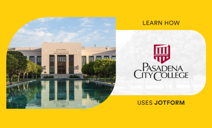 Now, Jotform is truly everywhere at Pasadena City College — the web design team even relies on Jotform to power all the embedded forms across the website, white labeled and branded with the campus logo and colors.