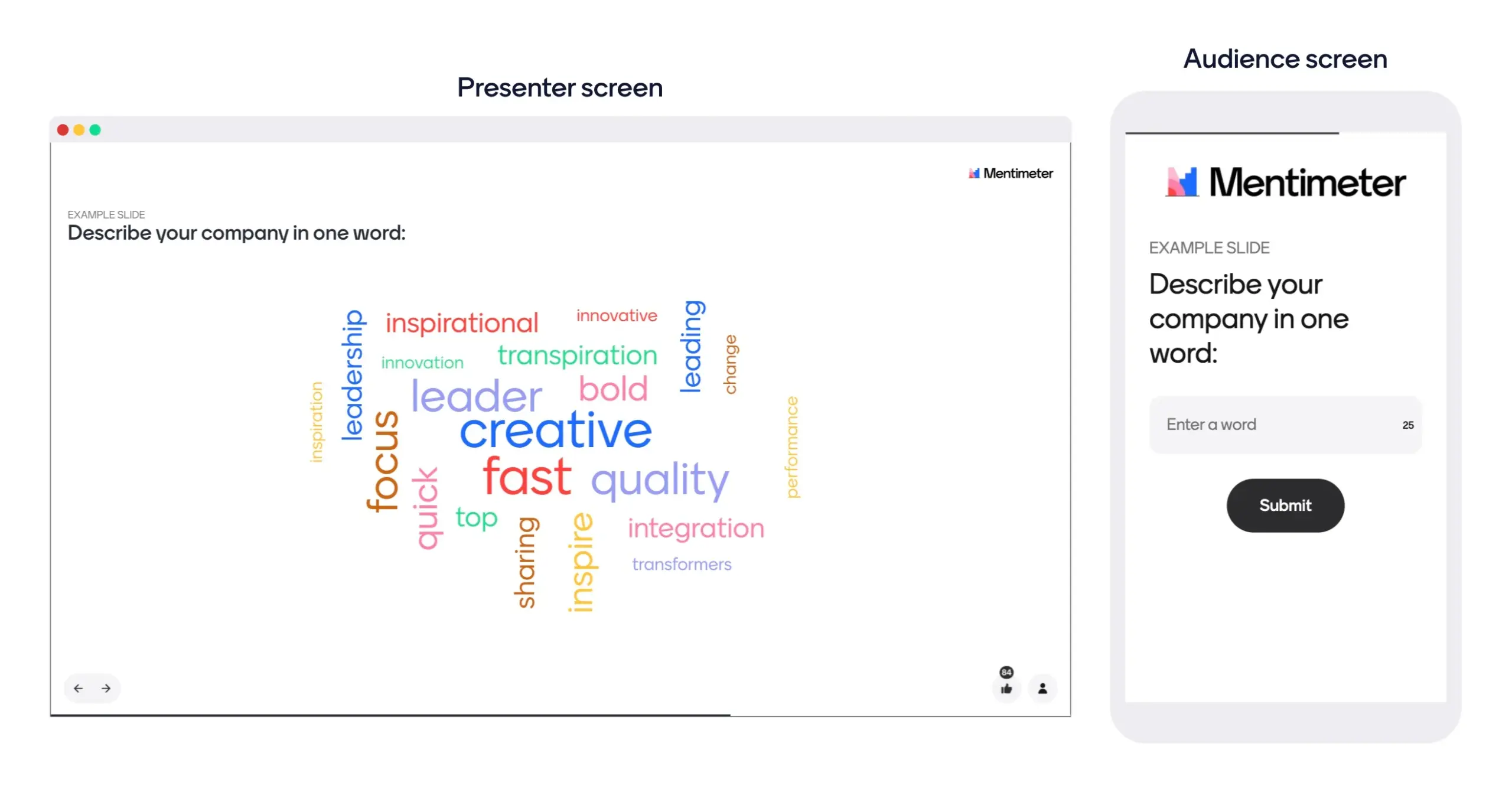 - Key features: Interactive question types, including word clouds, open-ended questions, ranking polls, quizzes and more; visual results that are rendered in real time; attractive templates designed for different contexts (i.e., team meetings, workshops, etc.); several integrations, including PowerPoint and Google Slides; collaboration tools