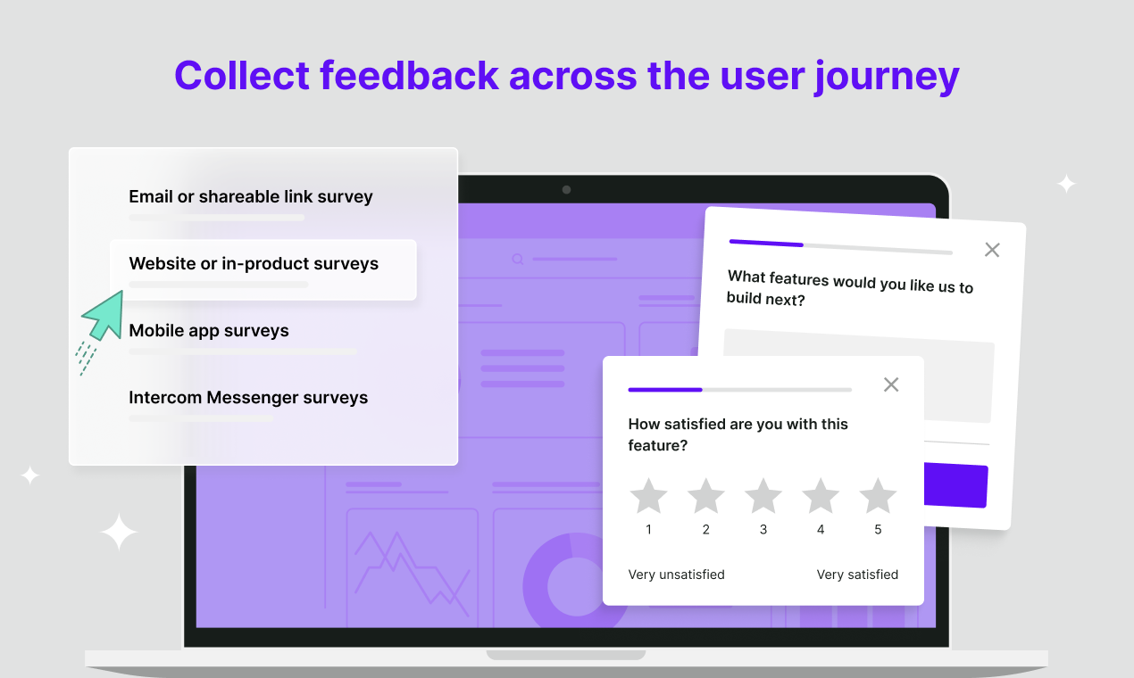 - Pros: Tool that’s well suited for customer feedback through targeted surveys, user-friendly interface, simple and straightforward creation process