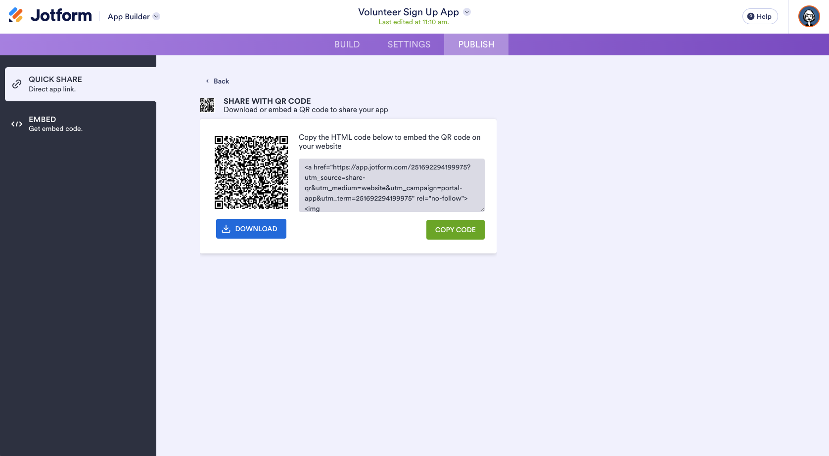 Jotform is an online form builder that makes creating QR codes for event check-ins a breeze. With Jotform, organizations can create a QR code for any form, such as an event registration form, check-in/check-out form, or sign-in sheet.