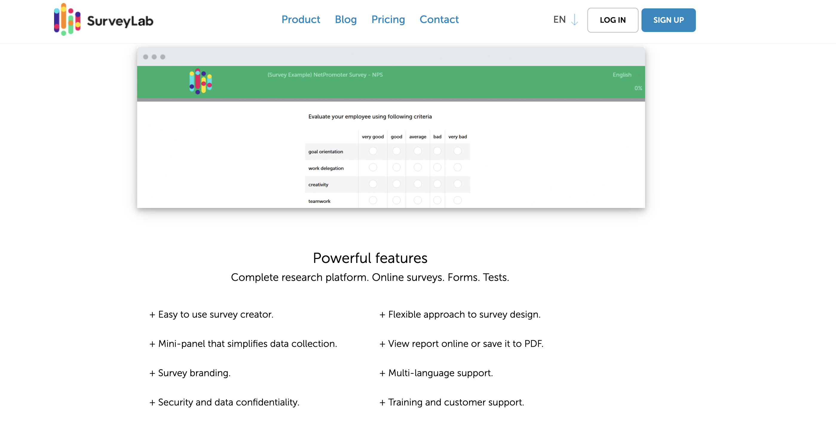 SurveyLab is similar to the enterprise-level solutions, but like SurveyMonkey, it may be a better fit for small to medium-sized businesses. Like several others on this list, it focuses on customer feedback, employee feedback, and market research.