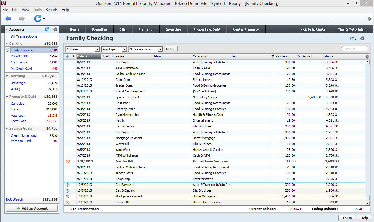 - The ability to add and manage up to 512 different accounts (i.e., savings, checking, credit cards, loans, other debt, etc.) to a Quicken file