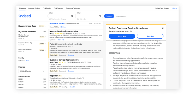 Indeed has a sponsored job feature using pay-per-click pricing — you pay only when candidates click on your posting. You set a daily budget, and Indeed adjusts your ad spend based on how much you’re willing to spend relative to similar jobs.