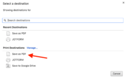 - In the “Print” popup window, change the “Destination” option to “Save as PDF.”