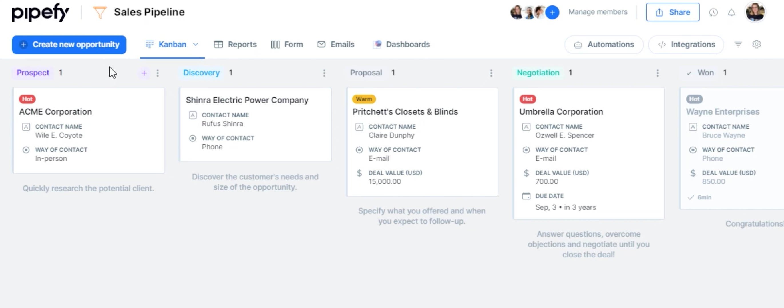 Workflow-management platform Pipefy helps users track leads by centralizing inbound and outbound data, standardizing their sales funnel and lead-gen processes, and automating the management of sales opportunities. It offers a sales CRM template, which helps convert your best leads faster and improves communication.