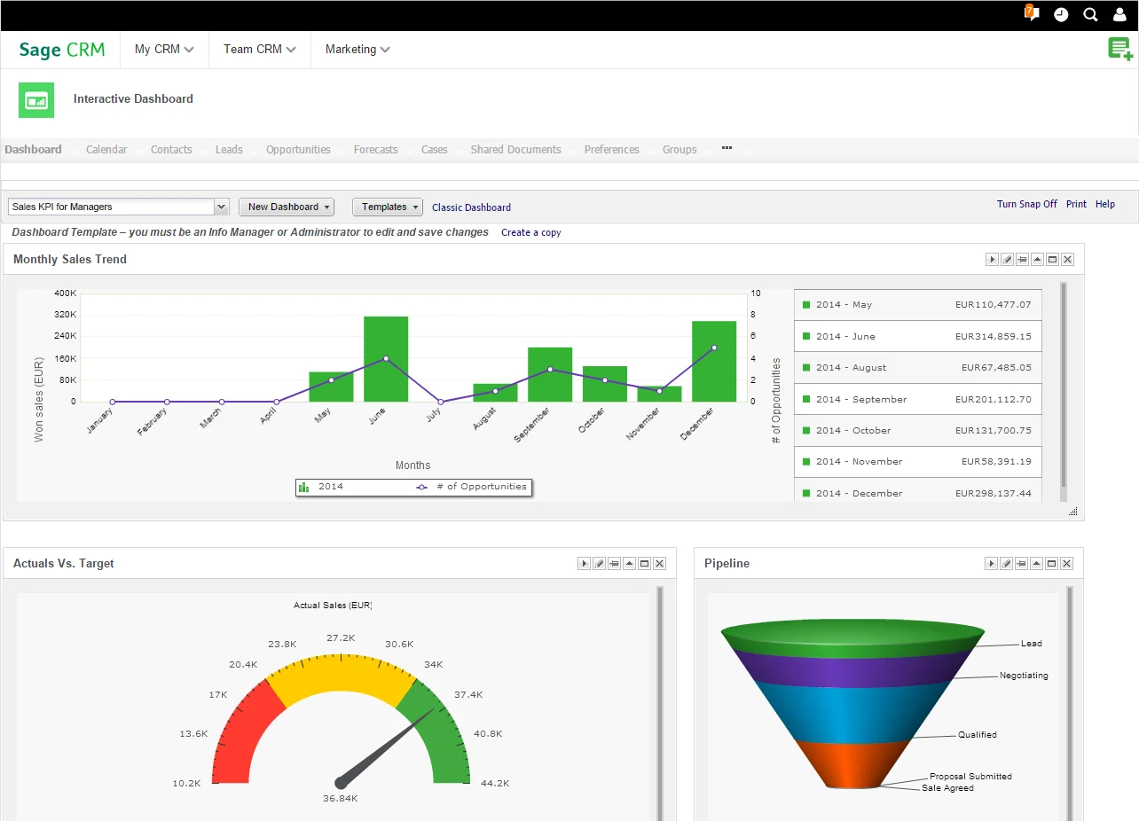 Designed for small and medium businesses, Sage CRM is a cloud-based solution to help businesses establish and manage customer relationships. Integrated modules are available specifically for sales and marketing, customer service, and help desks, allowing businesses to customize the CRM to their needs.