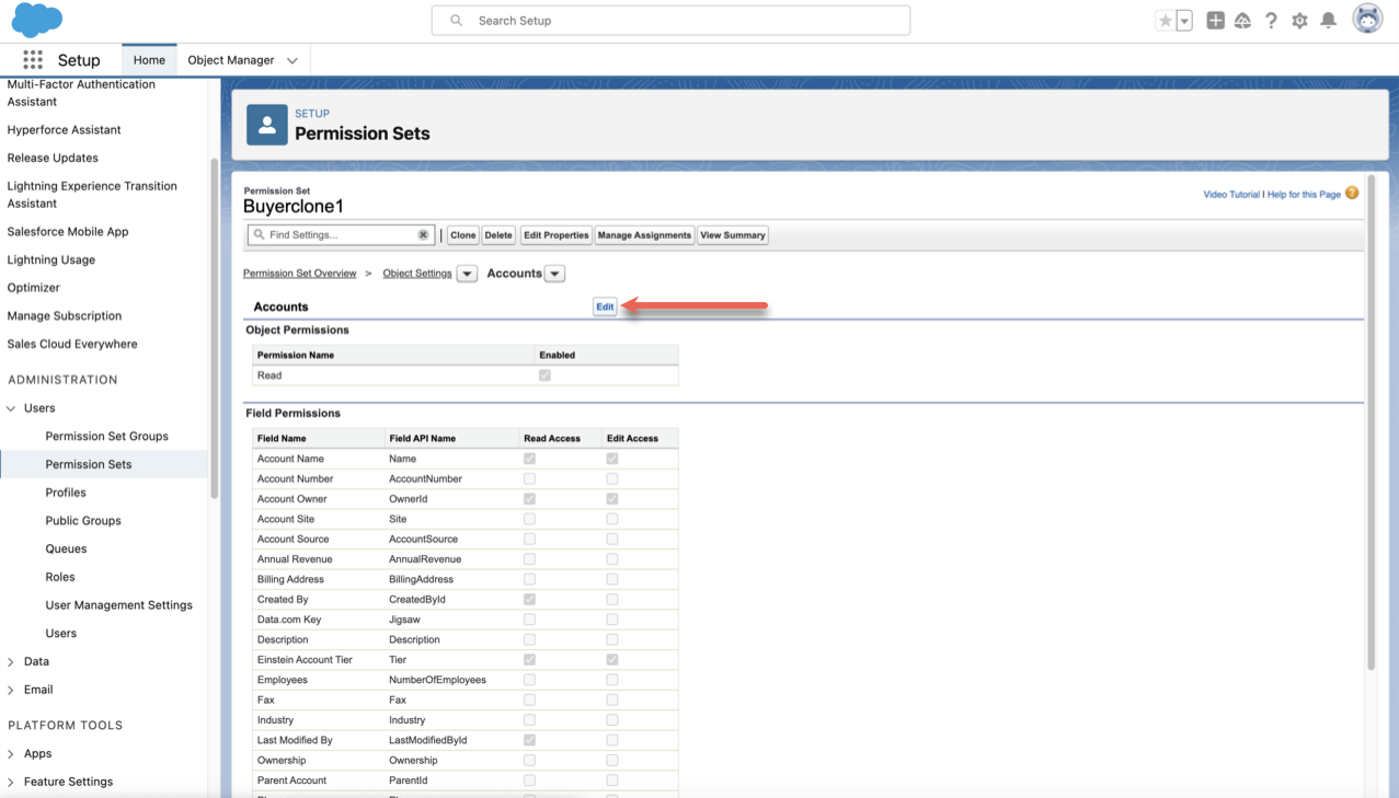 - Go to Permission Sets and click on the permission set you want to change access to.