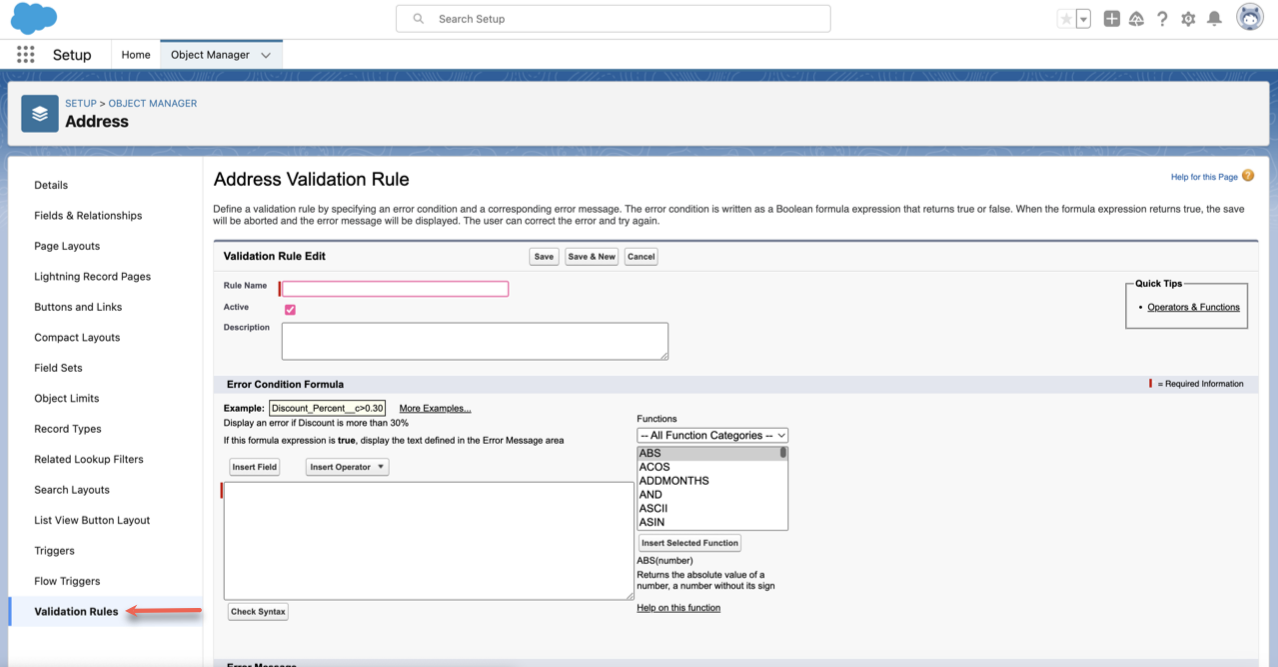 From here, you can check to see if your validation rules are up to date. If you have the appropriate access, you can also change validation rules to ensure your users don’t receive erroneous error messages.