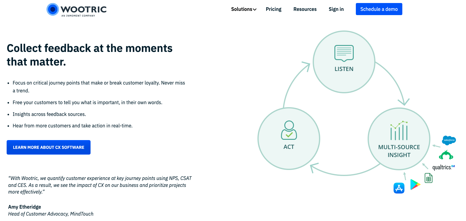 Similar to Qualtrics, Wootric is focused on customer experience management. Compared to similar programs, Wootric stands out with its emphasis on enriching Salesforce entries with additional data from Net Promoter Score® (NPS®), customer satisfaction score (CSAT), and customer effort score (CES) surveys. Wootric can also trigger surveys directly from Salesforce and integrates with other tools like HubSpot, Zendesk, and more.