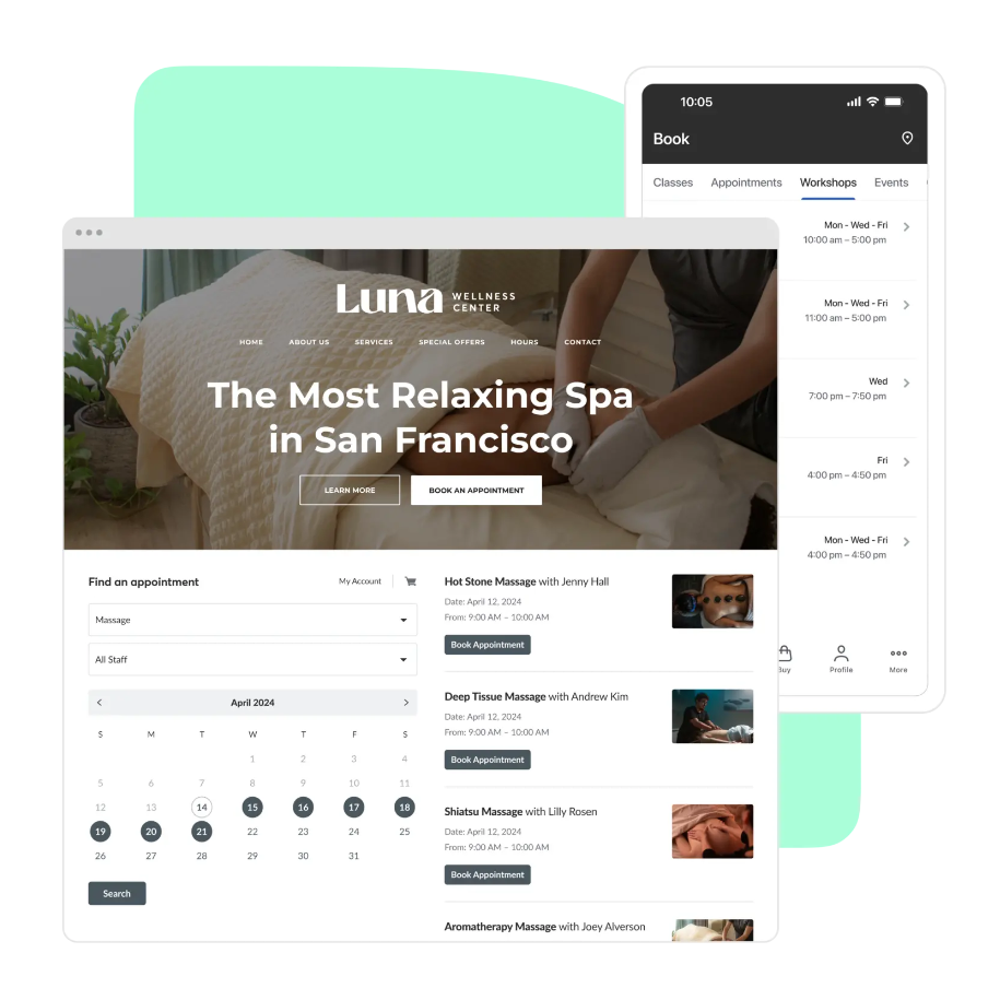 Mindbody, the industry standard for many gyms and studios, offers a comprehensive scheduling and business operations system. Multichannel booking options allow you to connect your website, branded app, the Mindbody app, and more, booking clients and managing your schedule from one screen. If you’re running a personal training business and have staff, you can enable them to control their own schedules, ultimately saving you time. The platform even lets clients choose their favorite spot when they book a group class.