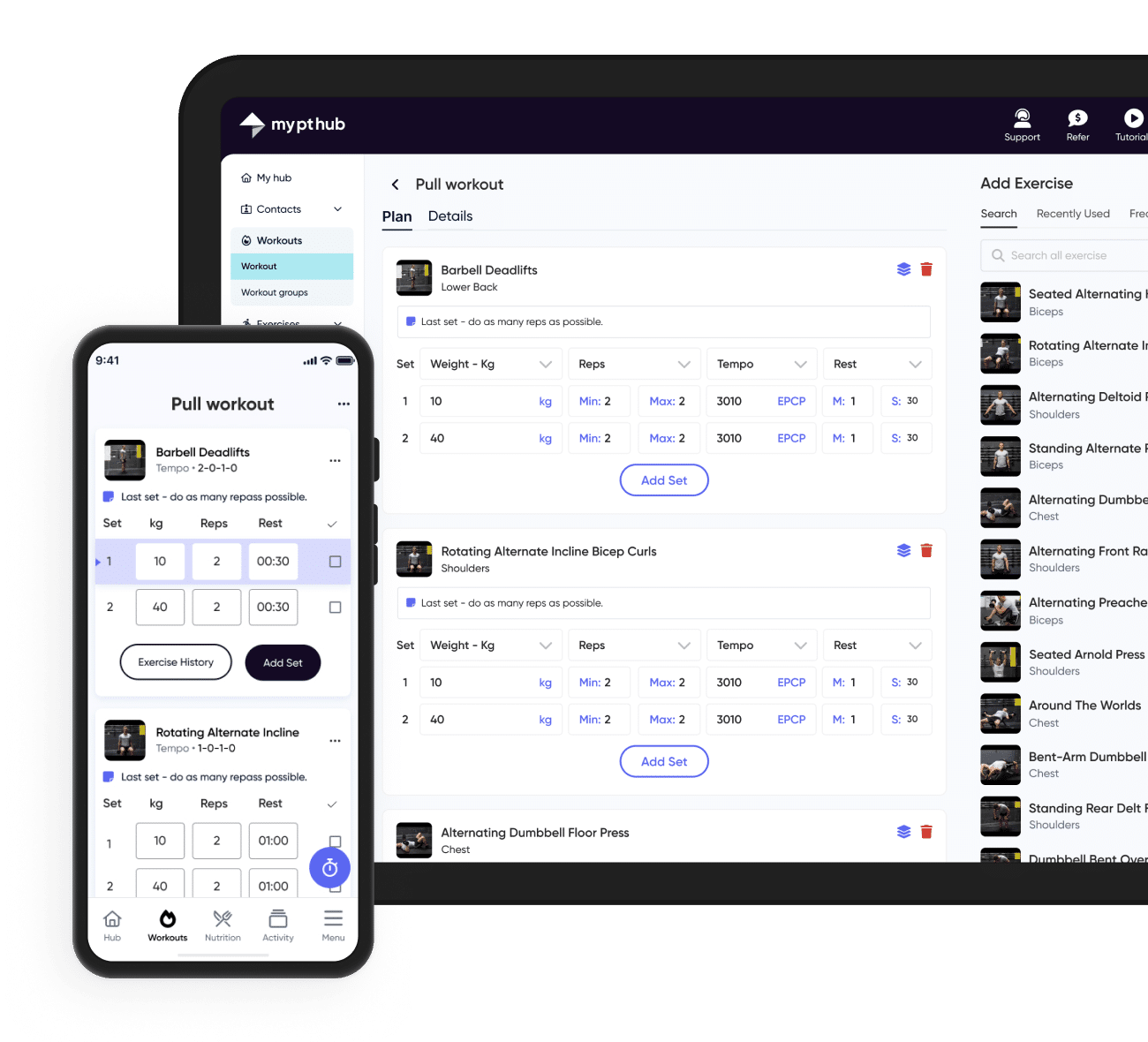 - Key features: My PT Hub features scheduling functions, workout templates, a customizable app, chat functionality, add notes to client records, billing and accounts tracking, and integrations with third-party wearable apps.
