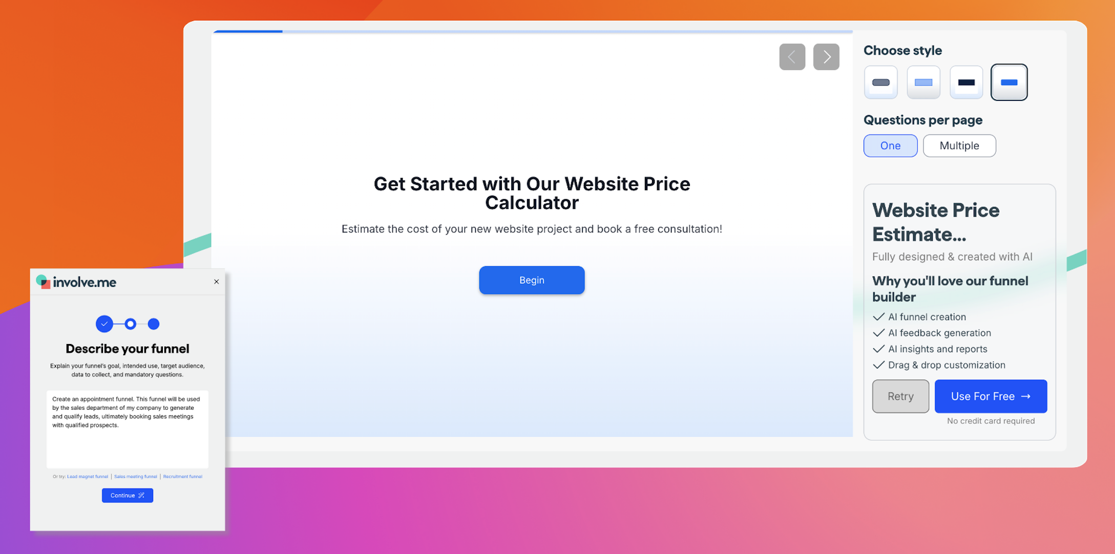 involve.me is no-code customer engagement software and ScoreApp alternative that enables you to create landing pages, widgets, and pop-ups for the entire customer journey. Like ScoreApp, involve.me also features interactive quiz-building capabilities and survey elements, along with a drag-and-drop interface to simplify the customizing of these assets.