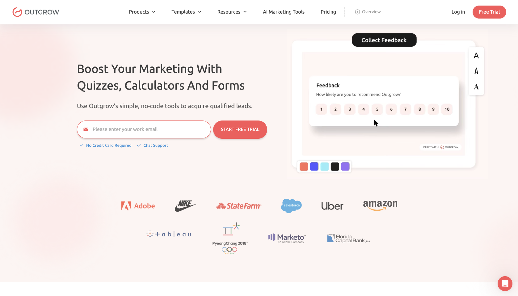 Outgrow is a ScoreApp alternative that also features a collection of quizzes you can use in your quiz funnel marketing. In addition, the solution includes forms, surveys, and calculators that can help you generate leads. You can craft quizzes and other forms using Outgrow’s text input fields, single and multi-select options, numeric sliders, opinion scales, date and time pickers, and file uploading capability.