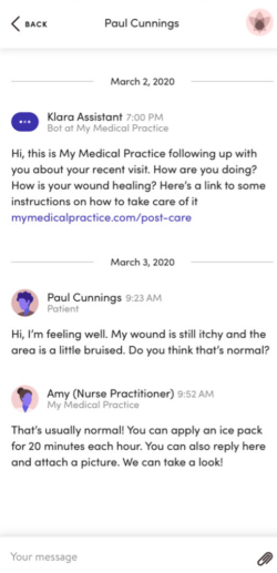 Klara is also capable of sending patient follow-ups for enhanced care coordination.