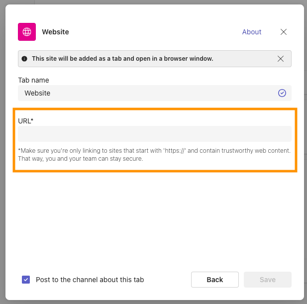 - Copy the URL of the shared calendar from Outlook, then paste it into the URL field in Microsoft Teams.