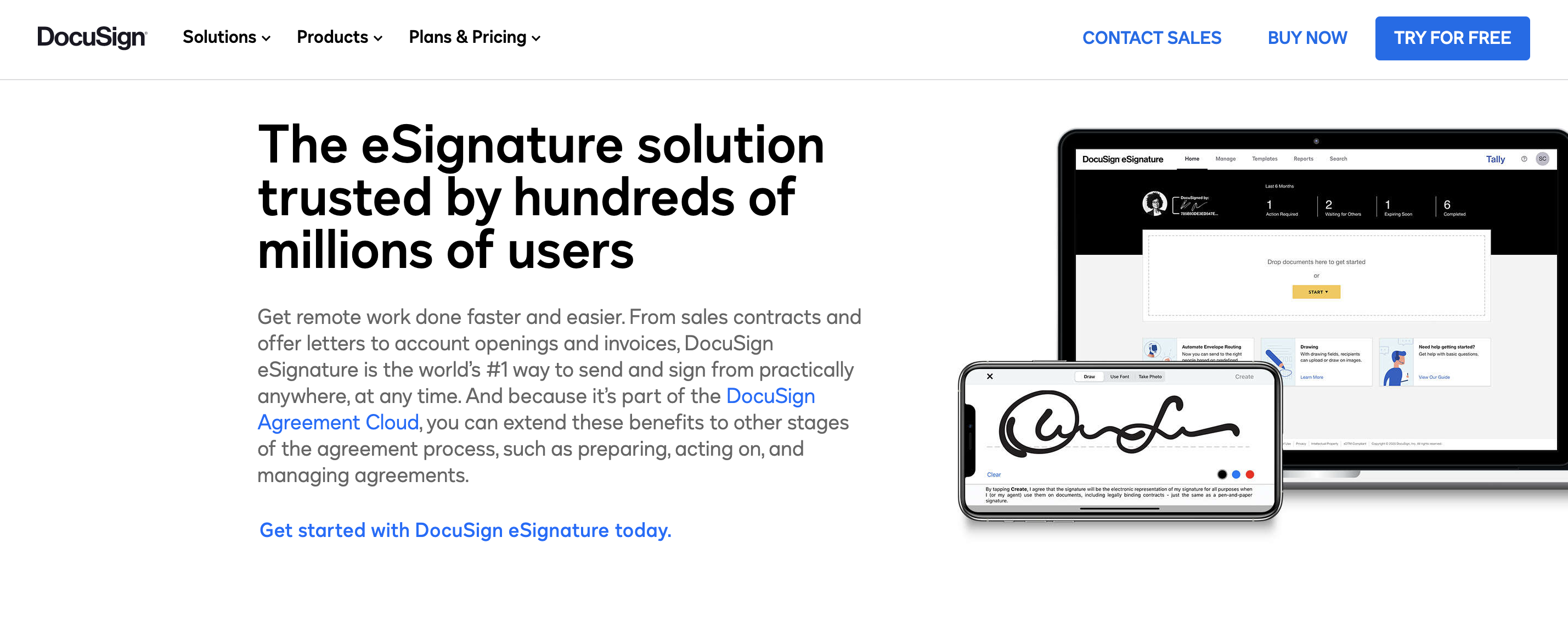 Not only does Docusign let you sign and send your documents electronically, but it also offers solutions to help you automate workflows, process payments, manage contracts, and streamline agreement generation and approvals — which can lower costs, save time, and improve customer satisfaction for your company. Docusign is simple, secure, and smart — with features like prefilled data, Guided Forms to simplify complex forms, and digital ID verification — and is used by more than 1 million customers around the world.