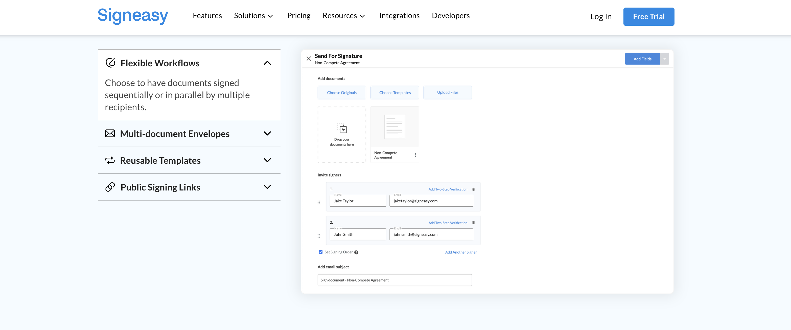 - Automated signing workflows with customizable order and reminders