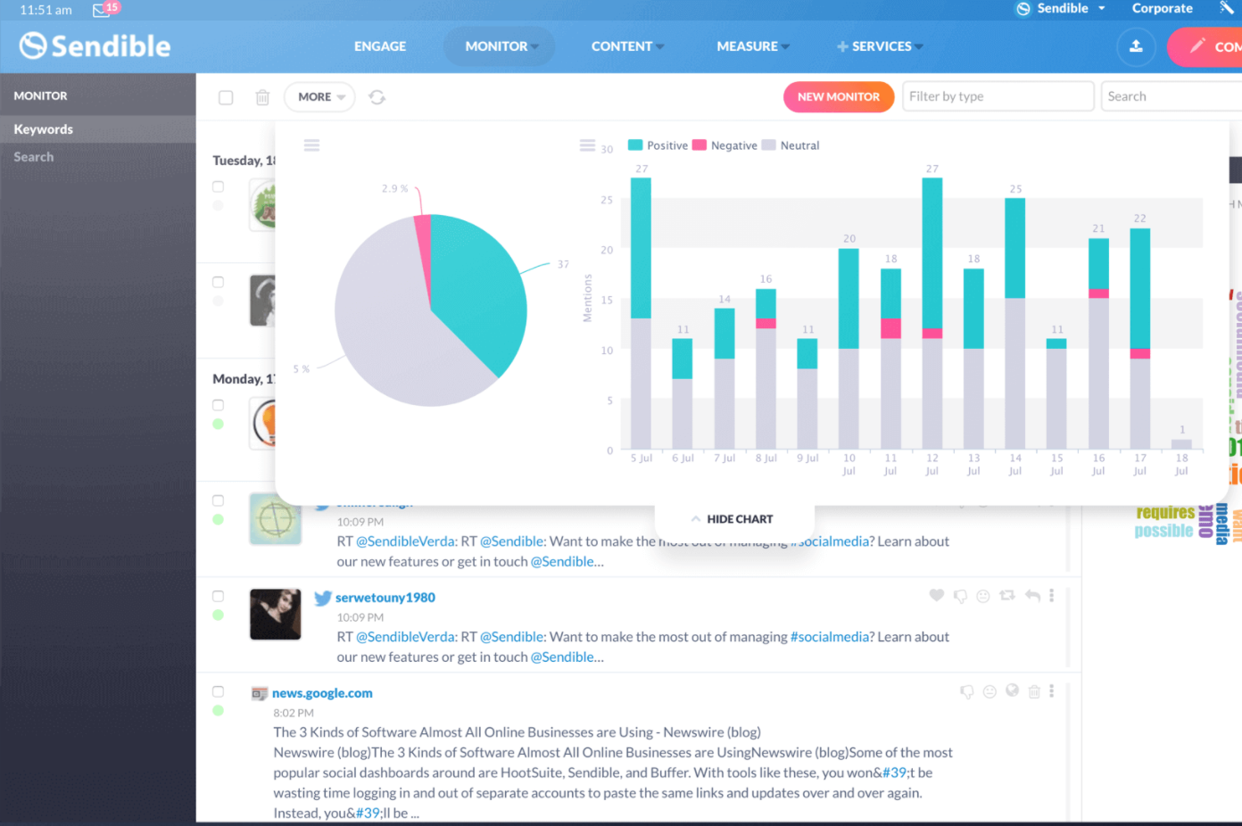 - Key features: Sendible’s robust reporting options help it stand out from the rest. With Sendible’s drag-and-drop tools, you can create presentation-ready, on-brand reports that you’ll be proud to share with clients. Plus, you can automate reports so you’ll never miss a deadline.