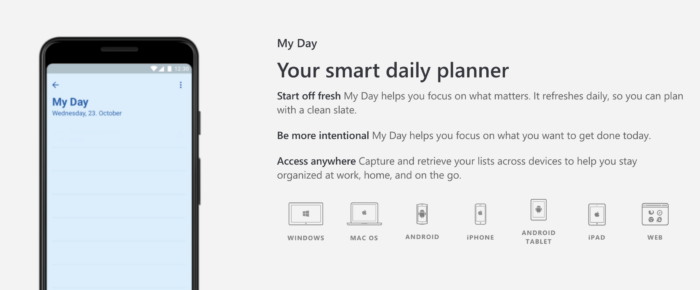 Microsoft To Do shines with its extremely broad platform support since the beginning, and nothing has changed about that. There are native apps for macOS, Windows, Android, iOS, and Windows smartphones. You can also integrate bookmarklets for Chrome, Firefox, and Safari, or install a Chrome extension. Microsoft To Do is seamlessly integrable into Microsoft Outlook.