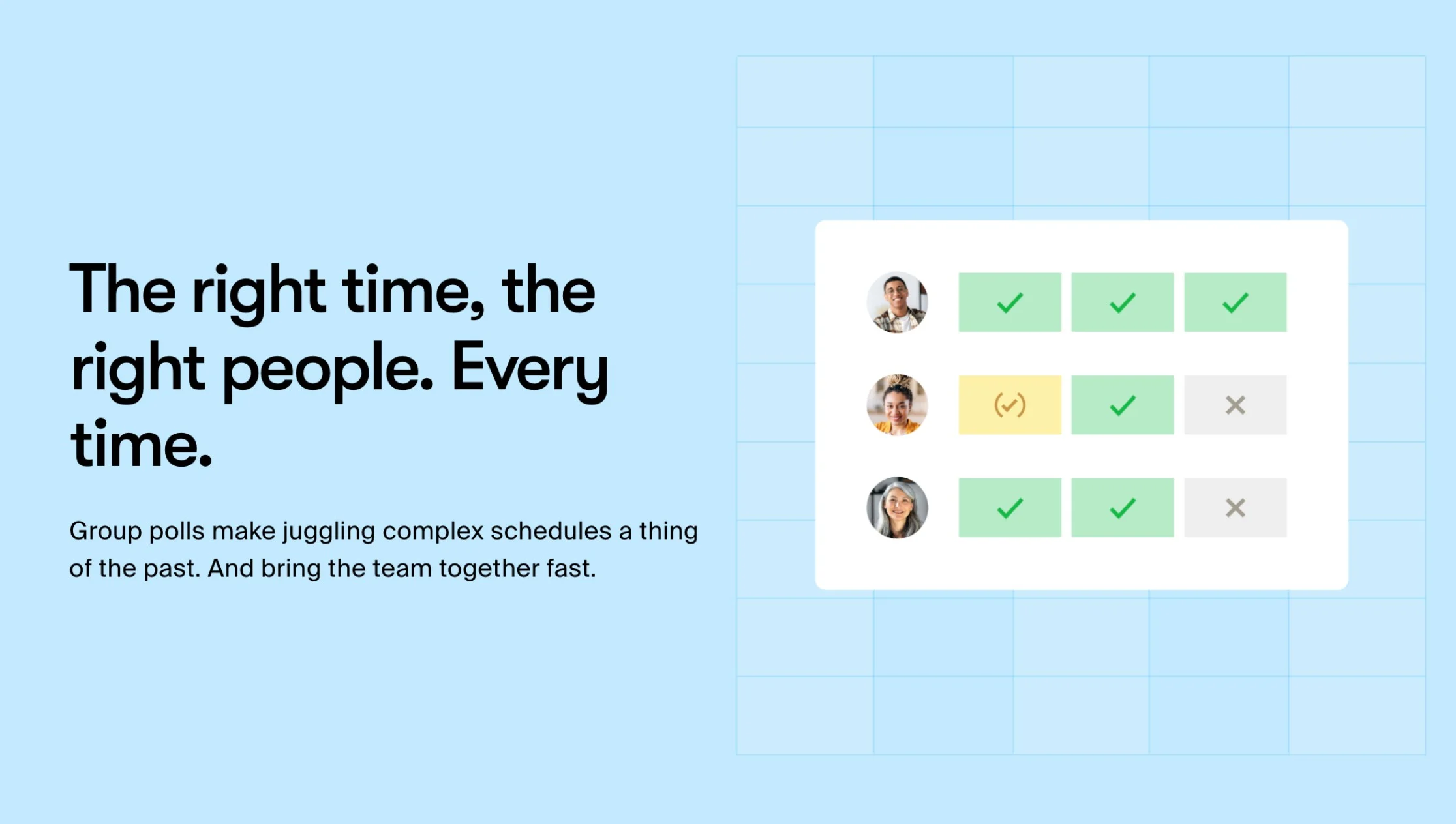 If you’re looking for a strong, richly featured tool that does one thing — polls for scheduling meetings — and does it beautifully, Doodle might be the perfect solution for your needs. Users can send a single email or message about potential meeting times and dates and then collate all responses in a single interface.