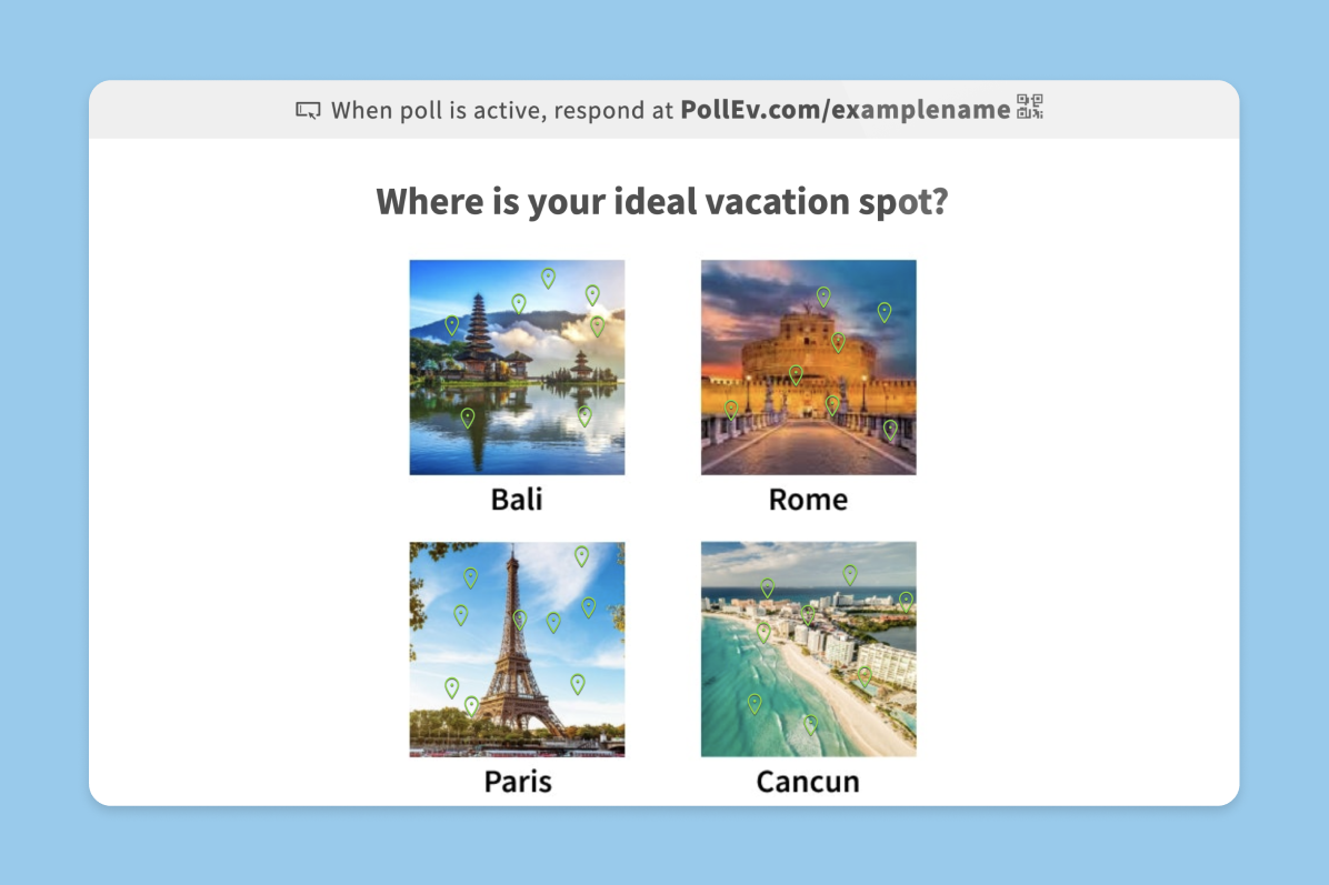 You can upload branded graphics to ensure you’re representing your brand well. You can even monetize your polls with sponsorships using branded images and messaging.