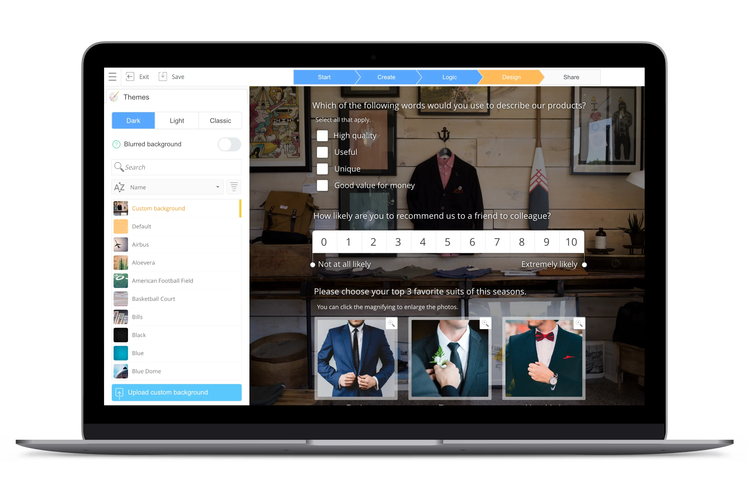 Whether you want to get to know your customers better or solicit employee feedback on policy changes, you can choose from among a number of different types of questions or prompts, then use the drag-and-drop function to create the perfect order for your questions. You can even add some conditional logic to create poll paths based on individual input.