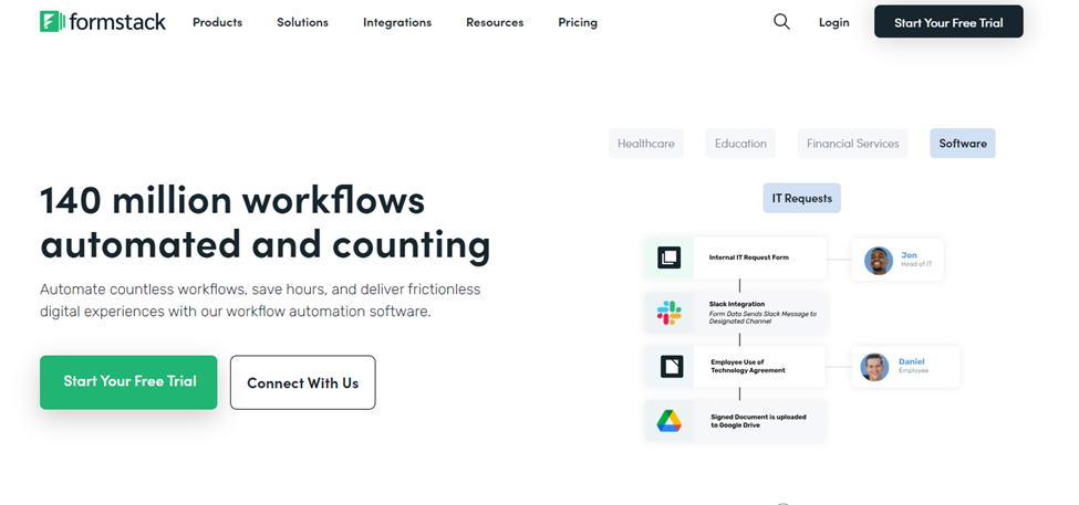 Formstack offers a free trial and five types of paid plans; the Forms plan for data collection starts at $50 per month.
