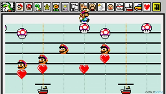 Mario Paint was an interesting game that came packaged with the SNES mouse. The game allowed you to create drawings and music within the game and save it for later. Mario appeared throughout the game in a variety of ways. For example, in the music generator he would jump along on top of the beats.