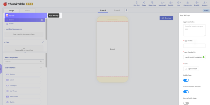 Because App Inventor is a teaching tool, it’s built to closely resemble the process of developing an app by coding. So while Thunkable is technically a no-code solution, creating logic for your apps is similar to actually coding them. The difference is that Thunkable uses drag-and-drop blocks to let you create logic through a visual interface.