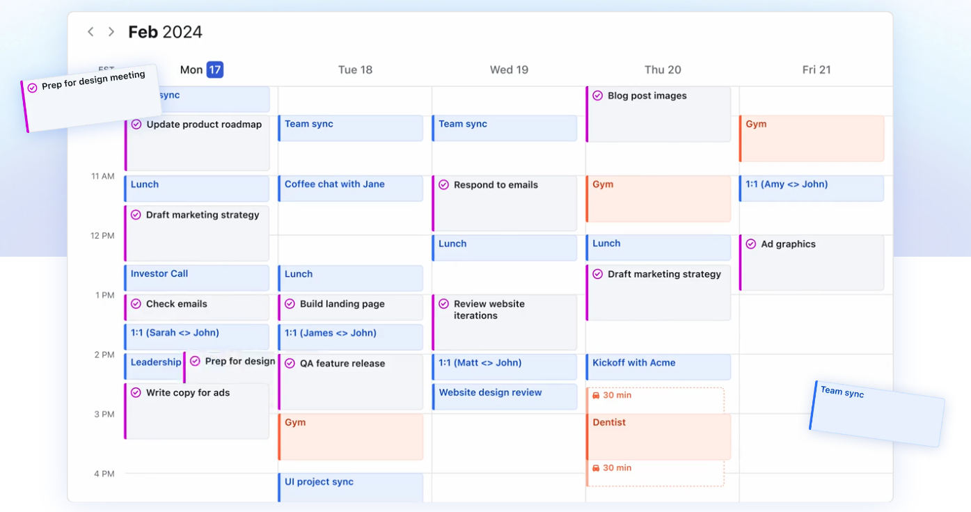 - Key features: automated scheduling, time blocking, task prioritization, calendar integration