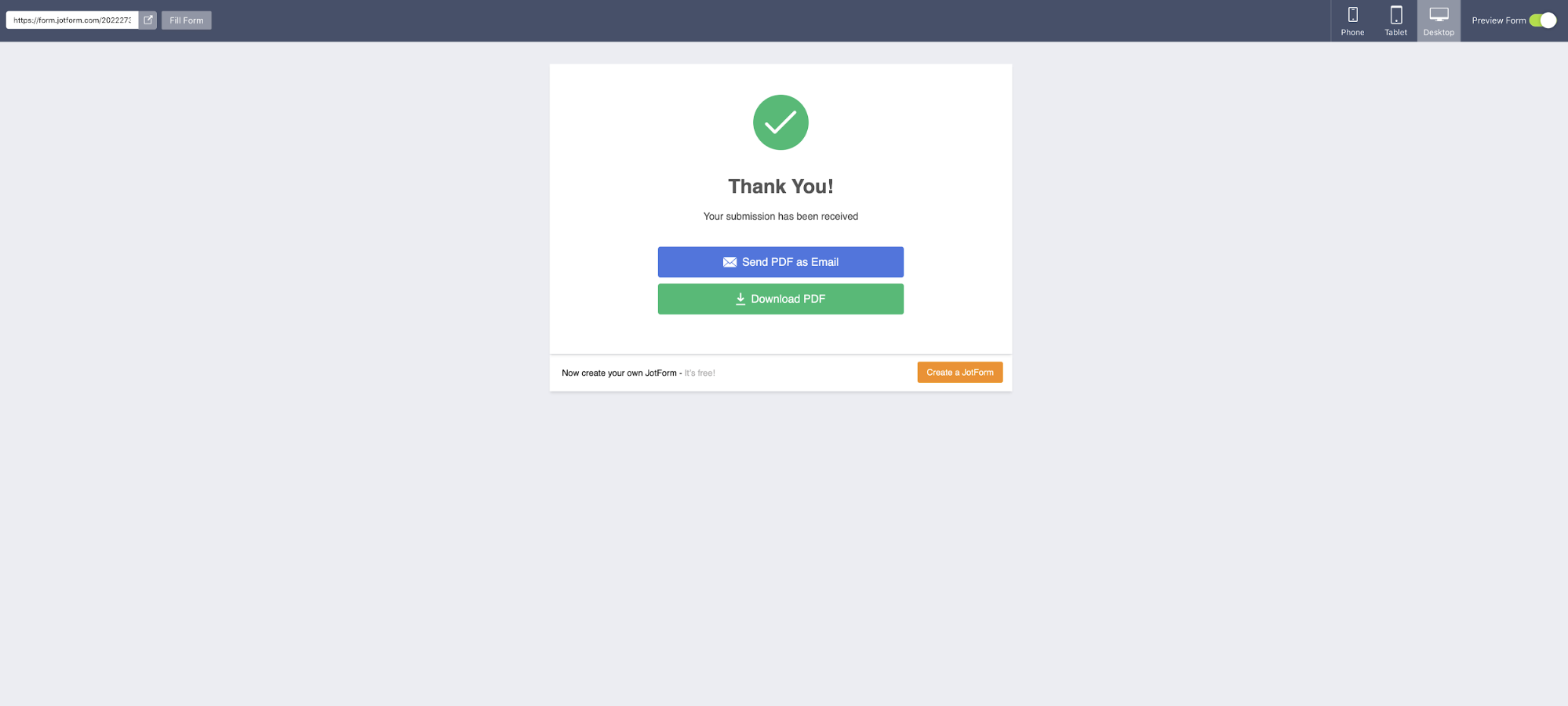 When the recipient gets the link, they’ll be taken to the online form version of the NDA. They’ll fill it out like any regular form, and when they submit it, they’ll be directed to a screen that enables them either to send the PDF as an email response or download it directly.