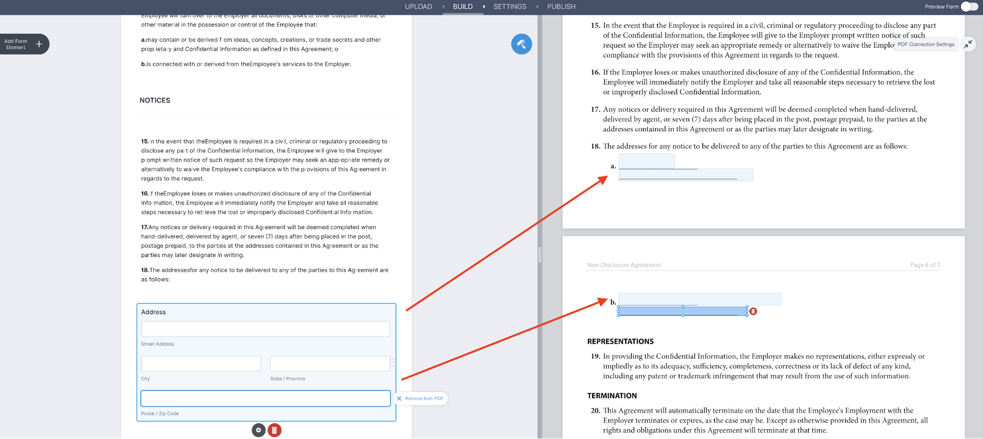 Now, make sure the data entry boxes on the original PDF file are positioned correctly in the blanks where the address is supposed to populate, as shown.