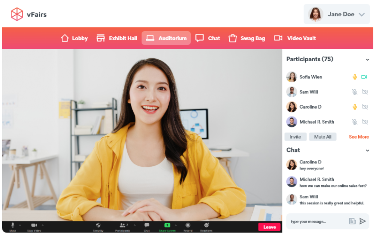 vFairs is the option for the virtual event planner with aesthetics at the top of their priority list. With the option for 3D visual designs and animations, you can create an event where your attendees will actually feel like they’re walking the conference hall, talking to exhibitors at their booths, or sitting in an auditorium.